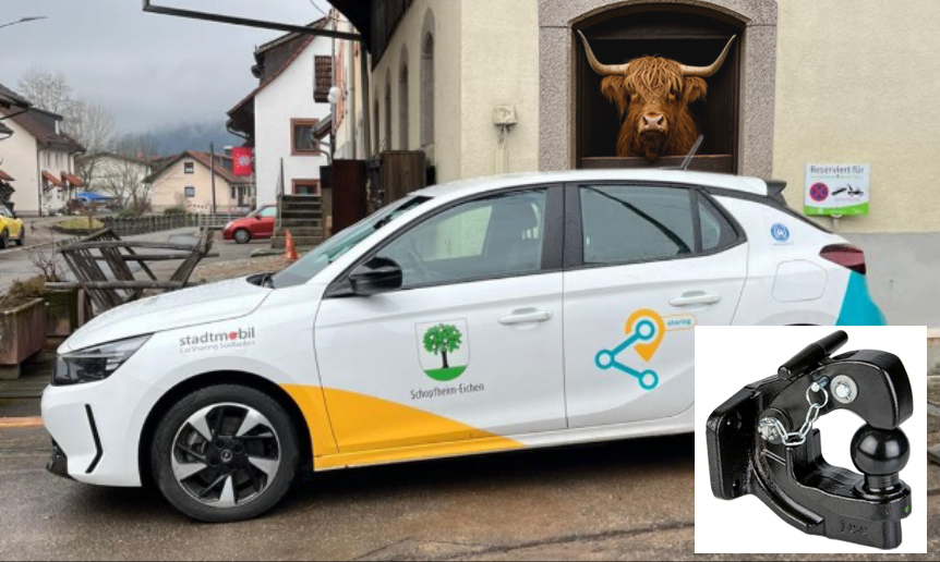 Nach zähen Verhandlungen wurde der eWicht als Dienstfahrzeug für die Farrenwärter zur Verfügung gestellt. Der Anbau der Kombi-Kugellkopf 4 Loch-Kupplung für Anhänger mit Kugelkupplung oder Zugöse an den eWicht ermöglicht künftig die gefahrlose Führung des wilden Bullens und die Nutzung als Zugfahrzeug für Heu- und Mistwagen.